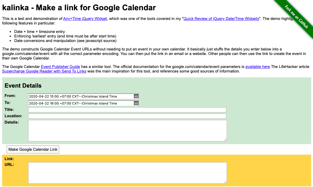 - You can click at the generated link to see how it looks on the Google Calendar.