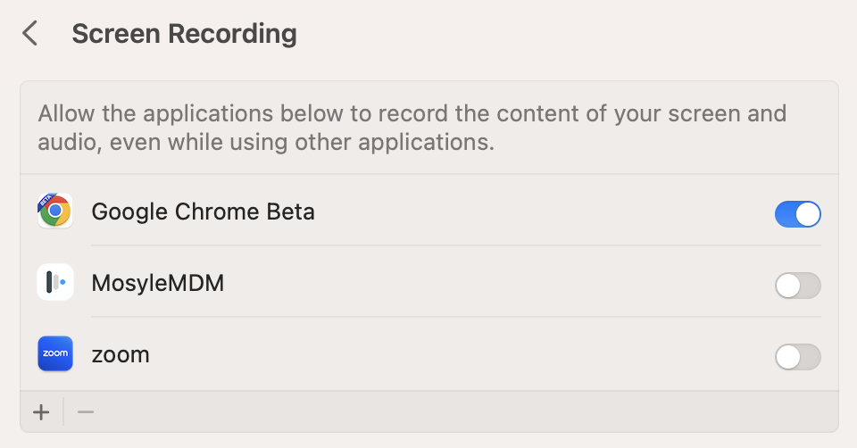 - If Zoom has no access to screen sharing you will see the exclamation marks like on the screenshot below