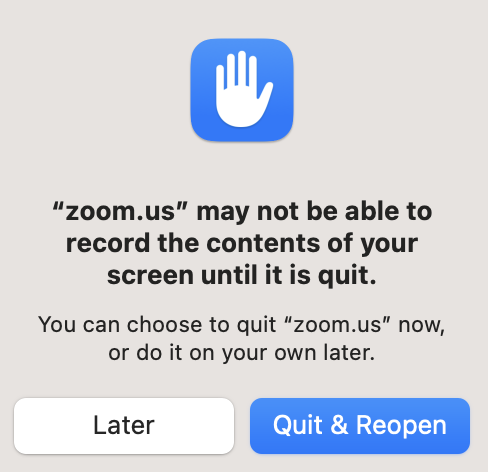 The first time you try to share your screen, zoom will ask you permission to share your screen. To allow this Zoom will have to be closed and reopened so it’t usefull to run through these steps before you host an actual meeting.