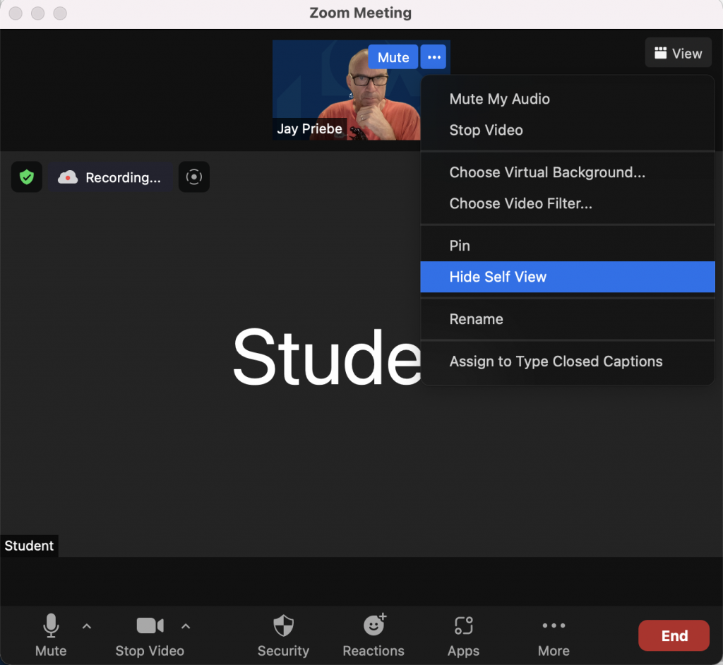 - If you do not want to see your own video (or your child to see their own video), you can Hide Self View.