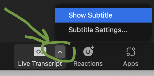- All meeting attendees can then choose whether to view the subtitles or not. They can also set the font size within Subtitle Settings.