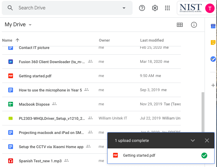 - The upload progress will show up in a little box in the bottom right hand corner. Wait until it finishes uploading.