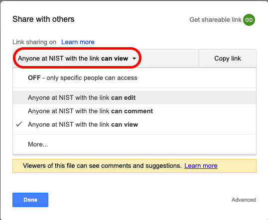 If you want anyone with access to think link to be able to edit the file, you can select the access from “can view” to “can edit”.