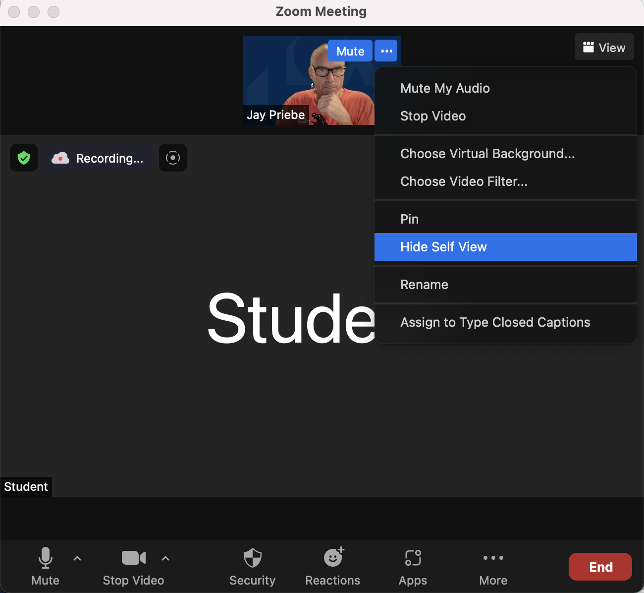 - If you do not want to see your own video (or your child to see their own video), you can Hide Self View.