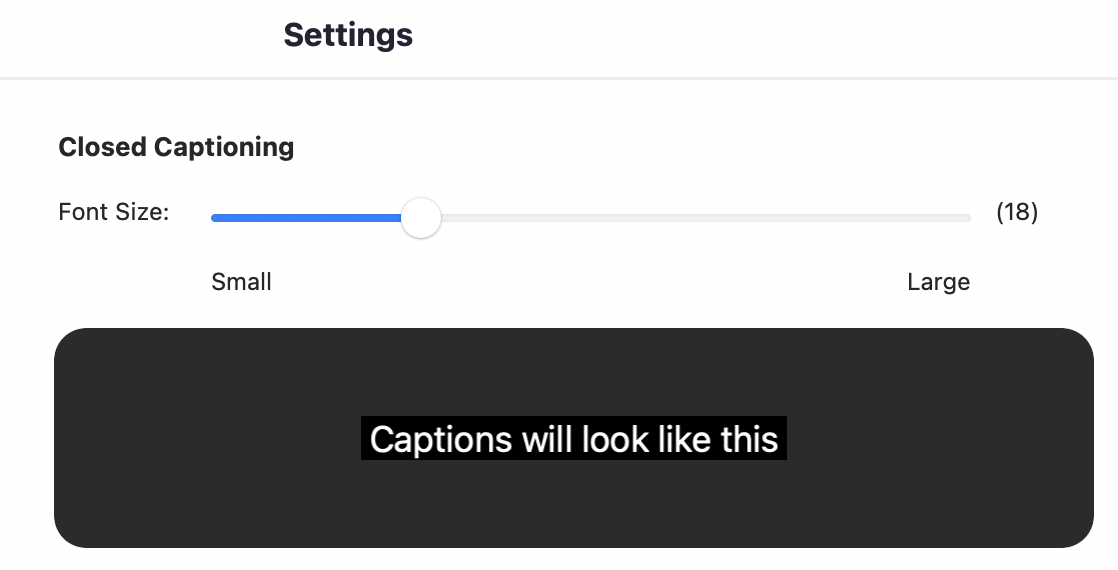 - All meeting attendees can then choose whether to view the subtitles or not. They can also set the font size within Subtitle Settings.